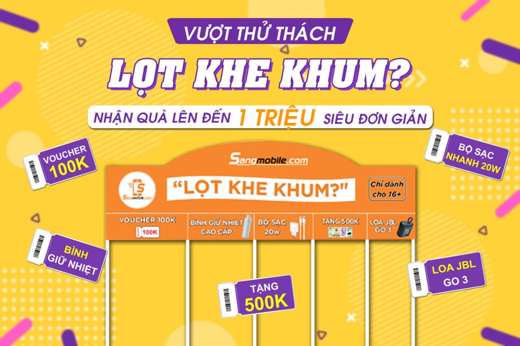 Thử thách "LỌT KHE KHUM?" đã và đang diễn ra cực nóng tại Sang Mobile. Nhận quà KHỦNG lên đến 1 triệu siêu đơn giản. Ghé ngay Sang Mobile sắm "dế yêu" đón Tết 2023 với giá siêu ưu đãi để tham gia thử thách nhận quà thôi nào!