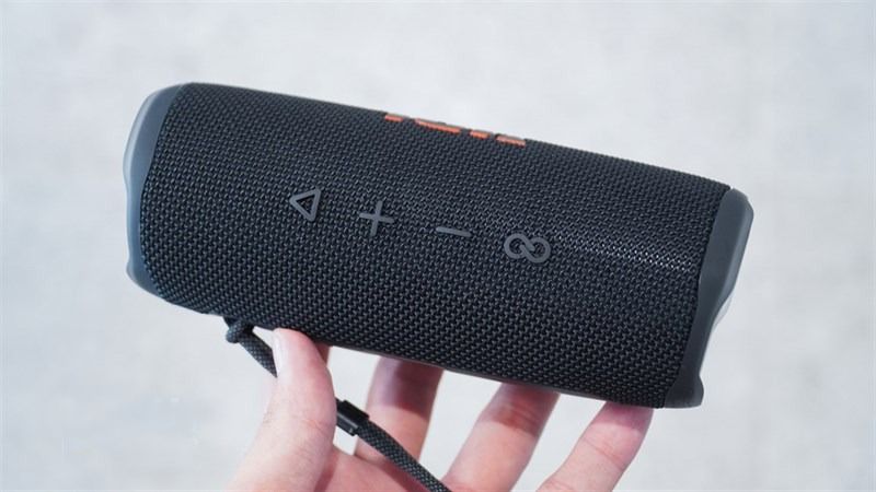 Điểm nhấn mà JBL Flip 6 sở hữu đó chính là phần logo JBL được khắc ngay trên thân loa thay vì sử dụng logo màu cam truyền thống, điều này giúp làm tăng thêm phần tinh tế và cao cấp cho thiết bị. Kết hợp với đó là hai chiếc loa bass ở hai bên đều được đổi thành biểu tượng nút play và dấu chấm thay vì chữ JBL như trên thế hệ tiền nhiệm. Khi bật những bài nhạc có nhiều âm bass, mình có thể thấy rõ được sự rung động mãnh liệt của màng loa này đấy các bạn ạ.