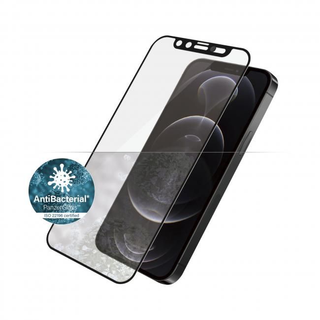 Miếng dán bảo vệ màn hình PanzerGlass™ màu đen cho iPhone 12 Pro Max với lớp phủ kháng thể có các tính năng tương tự như PanzerGlass™ ban đầu và sẽ bảo vệ màn hình của bạn khỏi trầy xước và va đập.