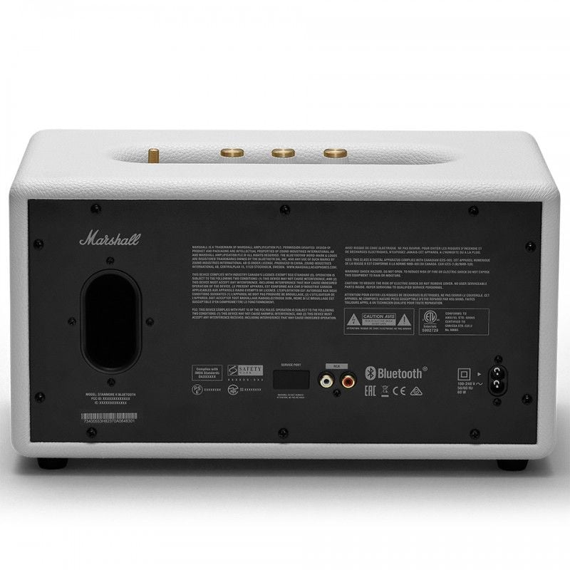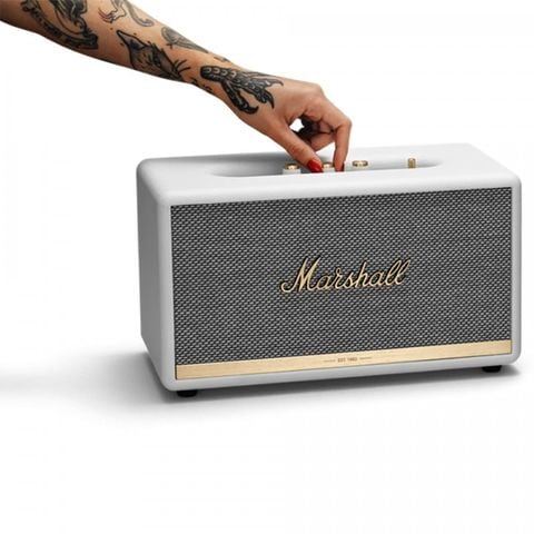 Marshall Stanmore II sở hữu những chi tiết đậm chất Marshall cổ điển như: toàn bộ khung viền loa được bọc da cao cấp với hai màu trắng và đen , lưới loa đan xen hài hòa giữa màu đen và trắng với logo hãng được đặt ở chính giữa. Ê-Căng của loa vẫn giữ được nét đẹp truyền thống, nhưng đã thay đổi về thiết kế, đồng thời điểm nhất đáng chú ý là dải kim loại vàng sáng cực kì nổi bật trên nền Ê-Căng đen. Ngoài ra trên dải kim loại này còn được khắc năm thành lập 1962 như một lời khẳng định về uy tín của thương hiệu đã có tuổi đời trên 50 năm, khiến cho chiếc loa càng thêm sang trọng trong thiết kế tân cổ điển. Và chắc chắn bạn sẽ tự hào khi bày một chiếc loa như thế này trong phòng.